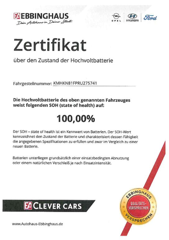 - Batteriezertifikat (SOH) 100 %
